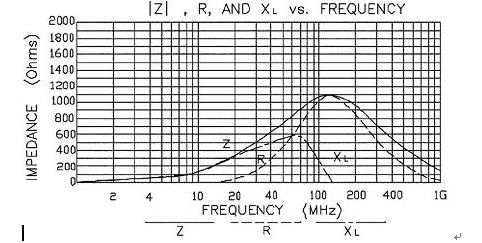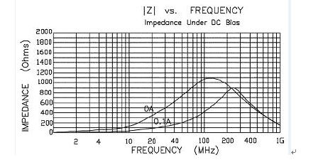 通過這一曲線,選擇在希望衰減噪聲的頻率范圍內(nèi)具有最大阻抗而在低頻和直流下信號衰減盡量小的磁珠型號。